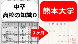 【熊本大学】中卒・偏差値20台から9ヶ月で熊本大学へ合格 熊本大学工学部へ中卒・偏差値20台から合格確定できた勉強法を公開します。高校偏差値60、戸畑高校の落ちこぼれ退学者が、高校の知識0から9ヶ月で熊本大学工学部環境システム工学科の合格を決めた勉強法です。 2024.03.24 熊本大学